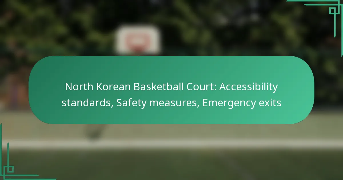 Accessibility standards for basketball courts in North Korea focus on ensuring that individuals with disabilities can navigate and enjoy the facilities. These standards encompass wheelchair access, seating arrangements, and safety measures to enhance the overall experience for all attendees.